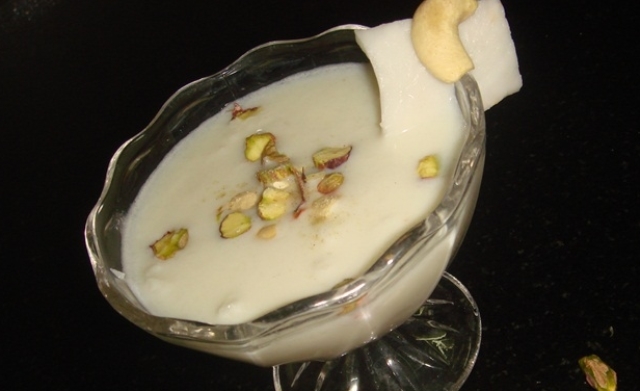 ഇളനീരിന്റെ ഉള്‍ഭാഗം ചുരണ്ടി കഷ്ണങ്ങളാക്കി മുറിച്ച് മാറ്റിവെക്കുക. ഇളനീര്‍ വെള്ളവും പഞ്ചസാരയും കുറച്ച് വെള്ളംചേര്‍ത്ത് മിക്‌സിയില്‍ നന്നായടിക്കുക. ഏലക്കാ പൊടിച്ചത് ചേര്‍ക്കുക. ഗ്ലാസുകളിലൊഴിച്ച് ഇളനീര്‍ പൂളുകള്‍ ചേര്‍ത്ത് മുകളില്‍ അണ്ടിപ്പരിപ്പോ, ബദാമോ, പിസ്തയോ വിതറി വിളമ്പുക.