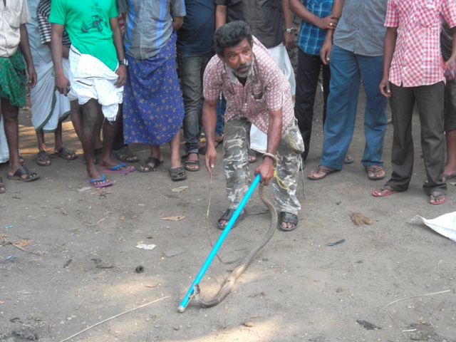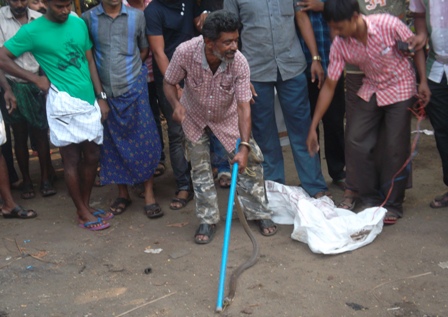 നാട്ടുകാരെ പുലിവാലുപിടിപ്പിച്ച മൂര്‍ഖനെ വനശ്രീക്ക് കൈമാറി.