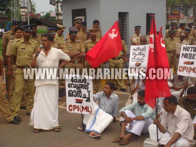 സംഘര്ഷ സാധ്യത മുന്നില് കണ്ട് മാര്ച്ചിനെ നേരിടാന് വന് പോലീസ് സന്നാഹമാണ് ടോള് ബൂത്തിന് സമീപം വിന്യസിച്ചിരുന്നത്. എന്നാല് വളരെ സമാധാന പരമായാണ് പ്രവര്ത്തകര് പ്രതിഷേധ പ്രകടനം നടത്തിയത്.