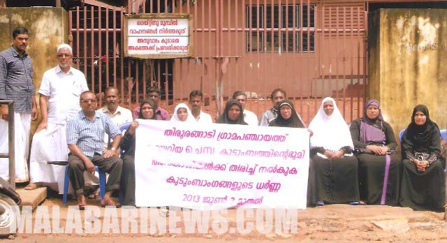 തിരൂരങ്ങാടി : തിരൂരങ്ങാടി പഞ്ചായത്തിനായി പുതുതായി നിര്മ്മിച്ച കെട്ടിടം നില്ക്കുന്ന ഭൂമി തങ്ങള്ക്ക് അവകാശപ്പെട്ടതാണെന്ന് പ്രഖ്യാപിച്ച് ചെമ്പ കുടുംബാംഗങ്ങള് അനിശ്ചിതകാല ഉപവാസം തുടങ്ങി. പഞ്ചായത്താപ്പീസിന് മുമ്പിലാണ് സമരം ആരംഭിച്ചത്. തങ്ങള്ക്ക്്് പൂര്വ്വികമായി ലഭിച്ച ഭൂമിയിലാണ് പഞ്ചായത്താപ്പീസ് നിര്മ്മിച്ചിരിക്കുന്നത്. അതിനാല് ഇത് തിരിച്ചേല്പ്പിക്കണമെന്നാണ് സമരക്കാര് ആവശ്യപ്പെടുന്നത്.