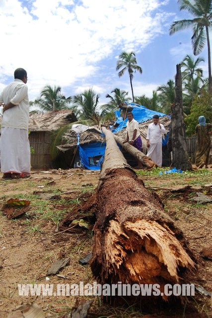 രണ്ട് തെങ്ങുകള്‍ വീണ് കുടില്‍ തകര്‍ന്നു
