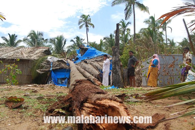 താനൂര്‍: തുടര്‍ച്ചയായി രണ്ട് തൈങ്ങുകള്‍ വീടിന്‍നേല്‍ വീണ് വീട് പൂര്‍ണമായി തകര്‍ന്നു. ഇന്നലെ അര്‍ദ്ധരാത്രി 12 മണിയോടെ താനൂര്‍ ചീരാന്‍ കടപ്പുറത്തെ ചെമ്പന്റെ പുരയക്കല്‍ മറിയത്തിന്റെ ഓല വീടാണ് തകര്‍ന്നത്. വീട്ടിനുള്ളിലുള്ളവര്‍ ഉറങ്ങിക്കിടക്കുമ്പോള്‍ ഒന്നിന് പിറകെ ഒന്നായി രണ്ട് തെങ്ങുകള്‍ വീടിന്മേല്‍ പതിക്കുകയായിരുന്നു. ഓടിക്കൂടിയ നാട്ടുകാരാണ് വീടിനുള്ളില്‍പ്പെട്ടയാളുകളെ രക്ഷിച്ചത്. അപകട സമയത്ത് വീട്ടിലുണ്ടായിരുന്ന കുഞ്ഞുങ്ങളടക്കമുള്ളവര്‍ തലനാരിഴയ്ക്കാണ് രക്ഷപ്പെട്ടത്.