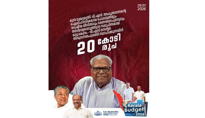 കേരളത്തിന്റെ സാമൂഹിക ജീവിതത്തിലെ ജ്വലിക്കുന്ന ഏടാണ് വി.എസിന്റെ സമരജീവിതമെന്നും വിഎസിന്റെ ഐതിഹാസികമായ പോരാട്ടങ്ങളും ജീവിതവും പുതിയ തലമുറയ്ക്ക് പകര്ന്നുനല്കാന് കഴിയുന്ന ഒരു കേന്ദ്രം – വി.എസ് സെന്റര് തിരുവനന്തപുരത്ത് സ്ഥാപിക്കുമെന്നും ധനമന്ത്രി കെ എന് ബാലഗോപാലന് ബജറ്റില് പ്രഖാപനം നടത്തി.