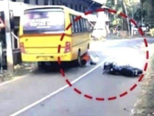 ബസിന്റെ മുന്നിലെയും പിന്നിലെയും ചക്രങ്ങളിൽ യുവാവ് ഉരസിയെങ്കിലും അത്ഭുതകരമായി രക്ഷപ്പെടുകയായിരുന്നു. സ്കൂൾ ബസിന്റെ ഡ്രൈവറി ന്റെ അസാമാന്യമായ മനസാന്നിധ്യമാണ് യുവാവിന്റെ ജീവൻ രക്ഷിച്ചതെന്ന് ദൃക്സാക്ഷികൾ പറഞ്ഞു. അപകടത്തിൻ്റെ സിസി ടിവി ദൃശ്യം വൈറലാണ്.