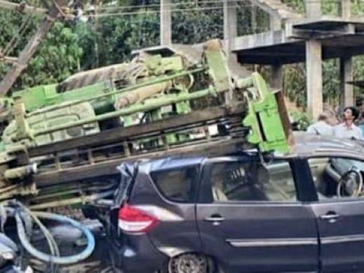ശനി വൈകിട്ട് ആറോടെയാണ് അപകടം. എതിർദിശയിൽ നിന്ന് വന്ന കാറിനുമുകളിലേക്കാണ് ലോറി മറിഞ്ഞത്.