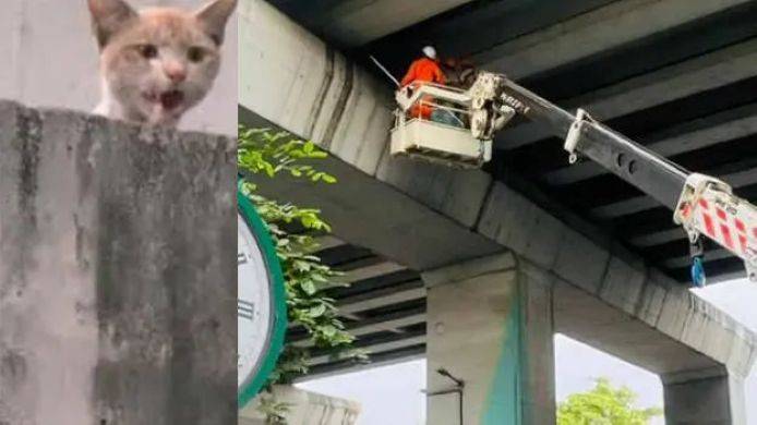 പൂച്ചയ്ക്ക് കഴിക്കാൻ ഭക്ഷണം തൂണിന് മുകളിൽ എത്തിച്ച ഫയർഫോഴ്സ് ഉദ്യോഗസ്ഥർ രാത്രി പതിനൊന്നരയ്ക്ക് മെട്രോ സർവീസ് അവസാനിച്ചശേഷം വീണ്ടും പൂച്ചയെ താഴെ ഇറക്കാനുള്ള ദൗത്യം തുടങ്ങും.