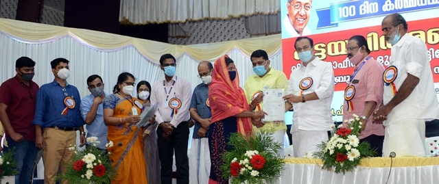 മലപ്പുറം : സര്ക്കാരിന്റെ 100 ദിന കര്മ്മദിന പരിപാടിയുടെ ഭാഗമായുള്ള ജില്ലയിലെ പട്ടയ വിതരണോദ്ഘാടനം മുഖ്യമന്ത്രി പിണറായി വിജയന് ഓണ്ലൈനായി നിര്വഹിച്ചു. സര്ക്കാര് ഇച്ഛാശക്തിയോടെ നടത്തിയ ഭരണ നടപടികളും ചട്ടഭേദഗതികളുമാണ് ഇത്രയും പേര്ക്ക് പട്ടയം നല്കാന് സാധ്യമാക്കിയതെന്ന് മുഖ്യമന്ത്രി സംസ്ഥാന തല പട്ടയ വിതരണോദ്ഘാടനവും സ്മാര്ട്ട് വില്ലേജ് ഓഫീസുകളുടെ കെട്ടിടോദ്ഘാടനവും നിര്വഹിച്ച് പറഞ്ഞു.