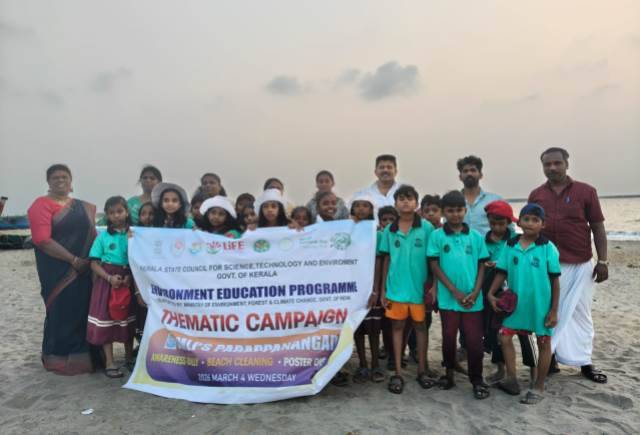 പരപ്പനങ്ങാടി:കേരള ശാസ്ത്ര സാങ്കേതിക പരിസ്ഥിതി കൗണ്സിലിന്റെ പരിസ്ഥിതി വിദ്യാഭ്യാസ പരിപാടിയായ തീമാറ്റിക് ക്യാമ്പയിനിന്റെ ഭാഗമായി ജി.എം എല് പി സ്കൂള് പരപ്പനങ്ങാടി , കാച്ചടി പി എം എസ് എ എല് പി സ്കൂള് എന്നിടങ്ങളിലെ ഹരിത സേനാംഗങ്ങള് കടല്തീരത്ത് അടിഞ്ഞുകൂടിയ മാലിന്യങ്ങള് ശേഖരിച്ച് ഹരിത കര്മ സേനയ്ക്ക് കൈമാറി.