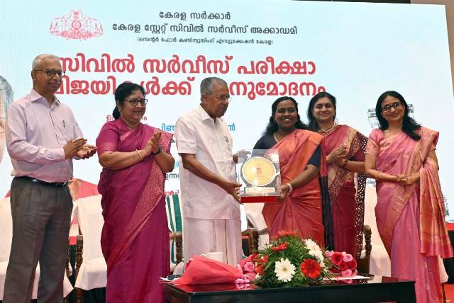 സംസ്ഥാന സര്ക്കാരിന്റെ സെന്റര് ഫോര് കണ്ടിന്യൂയിംഗ് എഡ്യൂക്കേഷന് കേരളയുടെ കീഴിലുള്ള സിവില് സര്വീസ് അക്കാദമി ഈ വര്ഷം മികച്ച നേട്ടമാണ് കൈവരിച്ചത്. അക്കാദമിയില് നിന്ന് 47 പേര് ഇത്തവണ വിജയികളായി. കഴിഞ്ഞ വര്ഷം ഇത് 43 ആയിരുന്നു. കൂടുതല് മലയാളികളെ സിവില് സര്വീസിലേക്ക് എത്തിക്കുക എന്ന ലക്ഷ്യത്തോടെ 2005ല് ആരംഭിച്ച അക്കാദമിക്ക് ഇന്ന് കേരളത്തിലെ എല്ലാ ജില്ലകളിലും സെന്ററുകളുണ്ട്. പിന്നാക്ക വിഭാഗങ്ങള്ക്കുള്ള പ്രത്യേക പിന്തുണ അക്കാദമി ഉറപ്പുവരുത്തുന്നുണ്ട്. പട്ടികജാതി-പട്ടികവര്ഗ വിഭാഗങ്ങള്ക്കും മത്സ്യത്തൊഴിലാളി വിഭാഗത്തിലെ കുട്ടികള്ക്കും സൗജന്യ പരിശീലനം നല്കുന്നുണ്ട്. പൊന്നാനി സബ് സെന്ററില് മുസ്ലീം ന്യൂനപക്ഷ വിദ്യാര്ത്ഥികള്ക്ക് ഫീസ് ഇളവ് നല്കുന്നുണ്ട്. സാമ്പത്തികമായി പിന്നാക്കം നില്ക്കുന്ന 100 കുട്ടികള്ക്ക് 40,000 രൂപയുടെ സാമ്പത്തിക സഹായം നല്കി വരുന്നു. യു.പി.എസ്.സി. മാറ്റങ്ങള്ക്കനുസരിച്ച് പാഠ്യപദ്ധതി പരിഷ്കരിക്കാന് അക്കാദമിയില് പ്രത്യേക റിസര്ച്ച് ആന്ഡ് ഡെവലപ്മെന്റ് കമ്മിറ്റിയും വിപുലമായ ലൈബ്രറി സൗകര്യവും ഒരുക്കിയിട്ടുണ്ടെന്നും മുഖ്യമന്ത്രി പറഞ്ഞു. കേരളത്തില് നിന്നും സിവില് സര്വീസ് പരീക്ഷ വിജയിച്ച 47 പേര്ക്കും മുഖ്യമന്ത്രി ഉപഹാരങ്ങള് നല്കി ആദരിച്ചു.