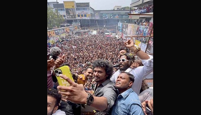 ആരാധകര് അനിയന്ത്രിതമായി എത്തിയതോടെ പൊലീസിന് ലാത്തിവീശേണ്ടി വന്നു. കാലിന് പരിക്കേറ്റതോടെ ലോകേഷിന്റെ കേരളത്തിലെ മറ്റു പരിപാടികള് റദ്ദാക്കി. തൃശൂര് രാഗം തീയേറ്ററിലും കൊച്ചി കവിത തീയേറ്ററിലും സന്ദര്ശനങ്ങള് നടത്താന് തീരുമാനിച്ചിരുന്നു. കൊച്ചിയില് ഇന്ന് നടത്താനിരുന്ന പ്രസ് മീറ്റ് മറ്റൊരു ദിവസത്തേക്ക് മാറ്റിവച്ചതായും വൈകാതെ കേരളത്തിലേയ്ക്ക് മടങ്ങിയെത്തുമെന്നും ലോകേഷ് വ്യക്തമാക്കി.