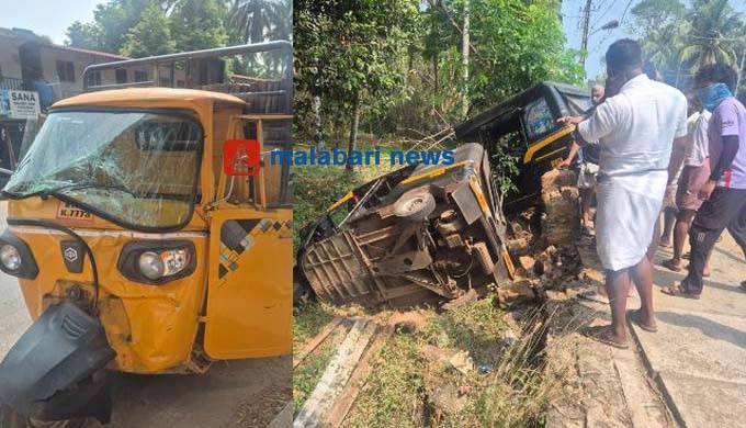 താനൂരില് നിന്നും പരപ്പനങ്ങാടി ഭാഗത്തേക്ക് പോവുകയായിരുന്ന കോണ്ഗ്രീറ്റ് നിര്മ്മാണത്തിന് ഉപയോഗിക്കുന്ന ഇരുമ്പ് ഷീറ്റുകള് നിറച്ചു വന്ന ഗുഡ്സ് ഓട്ടോയാണ് നിയന്ത്രണം വിട്ട് റോഡരികിലേക്ക് പാഞ്ഞ് കയറിയത്.