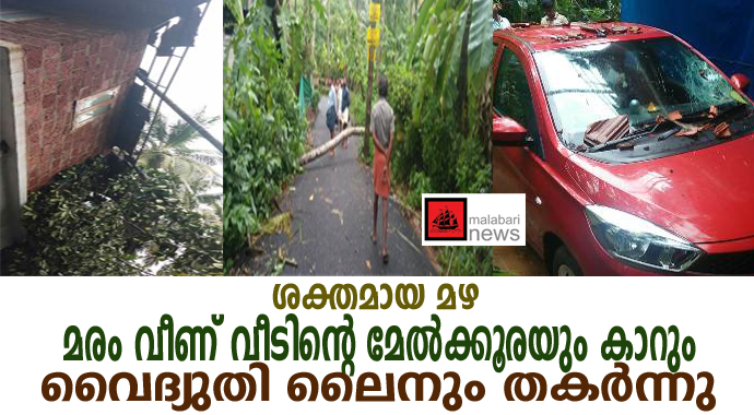 ഇവരുടെ വീടിന് സമീപത്തെ സന്തേഷിന്റ വീട്ടുമുറ്റത്ത് നിര്ത്തിയിട്ടിരുന്ന ടാറ്റ ടിയാഗോ കാറിന് മുകളിലേത്ത് മരം വീണ് കാറിന്റെ ചില്ലുകള് തകര്ന്നു. സമീപത്തെ ഇലക്ട്രിക്ക് പോസ്റ്റിന് മുകളിലേക്ക് തെങ്ങ് മുറിഞ്ഞ് വീണ് വൈദ്യുതി ലൈനും തകര്ന്നു.