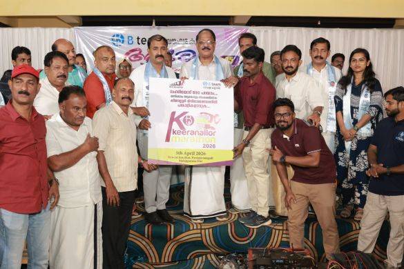 പരപ്പനങ്ങാടി :- വർദ്ധിച്ചുവരുന്ന ലഹരിക്കെതിരെ പാലത്തിങ്ങൽ ബി. ടീം സൗഹൃദ കൂട്ടായ്മ 2026 ഏപ്രിൽ 5- ഞായറാഴ്ച പാലത്തിങ്ങൽ കിരനല്ലൂർ ന്യൂ കട്ടിൽ വെച്ച് സംഘടിപ്പിക്കുന്ന കീരനല്ലൂർ മിനി മാരത്തോൺ സീസൺ – 2 വിൻ്റെ ലോഗോ പ്രകാശനം മലപ്പുറം ജില്ലാ പഞ്ചായത്ത് പ്രസിഡൻ്റ് ജബ്ബാർ ഹാജിയും വൈസ് പ്രസിഡണ്ട് അഡ്വ. സ്മിജിയും ചേർന്ന് ബി ടീം ചെയർമാൻ ഡോ. എം. എ കബീറിനും സംഘാടക സമിതി കൺവീനറും മുൻ കേരള പോലീസ് ഫുട്ബോൾ താരവുമായ കെ.ടി വിനോദിന് നൽകി നിർവ്വഹിച്ചു.