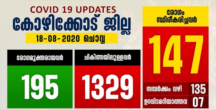 കോഴിക്കോട് എഫ്.എല്.ടി.സി, മെഡിക്കല് കോളേജ്, എന്.ഐ.ടി. എഫ്.എല്.ടി.സികളില് ചികിത്സയിലായിരുന്ന 195 പേര് രോഗമുക്തി നേടി കോഴിക്കോട് കോര്പ്പറേഷന് – 69, പെരുവയല് – 14, ഒളവണ്ണ – 10, മാവൂര് – 8, തിക്കോടി – 6, ഓമശ്ശേരി – 6, കട്ടിപ്പാറ – 6, രാമനാട്ടുകര – 5, പെരുമണ്ണ – 5, മുക്കം – 5, കൊയിലാണ്ടി – 5, ചങ്ങരോത്ത് – 4, ഫറോക്ക് – 4, നടുവണ്ണൂര് – 3, കോടഞ്ചേരി – 3, കുന്നുമ്മല് – 3, ഒഞ്ചിയം – 3,