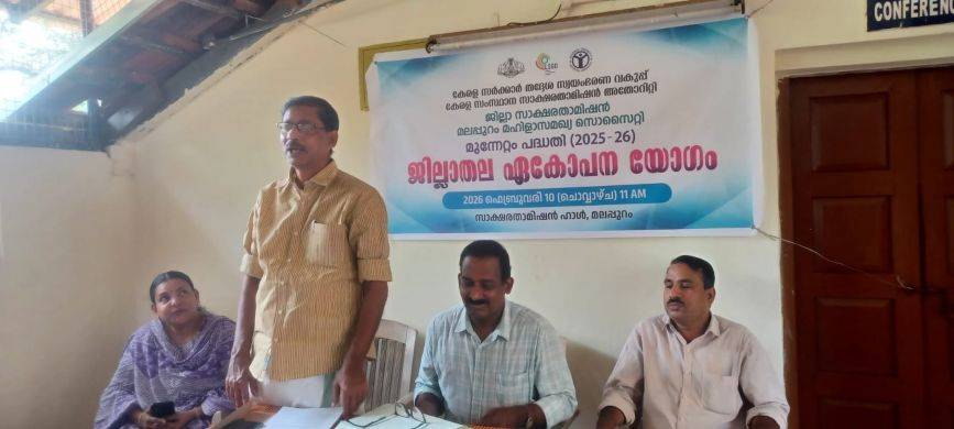 സാക്ഷരത മിഷന് ജില്ലാ കോഡിനേറ്റര് പി.വി. ശാസ്ത്ര പ്രസാദ്, മഹിളാ സമഖ്യ സൊസൈറ്റി ജില്ലാ കോഡിനേറ്റര് എം. റെജീന, ജില്ലാ റിസോഴ്സ് പേഴ്സണ് ബിന്ദു മോള് ജോര്ജ്, സാക്ഷരത മിഷന് സ്റ്റാഫ് കെ. മൊയ്തീന്കുട്ടി തുടങ്ങിയവര് ചര്ച്ചയില് പങ്കെടുത്തു.