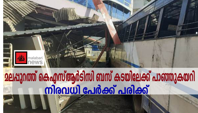 മലപ്പുറം: കെ എസ് ആര് ടി സി ബസ് കടയിലേക്ക് പാഞ്ഞുകയറി. നിരവധി പേര്ക്ക് പരിക്കേറ്റു. ഇന്ന് രാവിലെ 9.20 ഓടെയാണ് മലപ്പുറം ബസ്റ്റാന്റിന് സമീപം അപകടം സംഭവിച്ചത്.