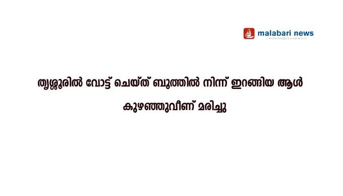 തൃശ്ശൂര്:വോട്ട് ചെയ്ത് പുറത്തിറങ്ങിയ ആള് കുഴഞ്ഞുവീണ് മരിച്ചു. കൊമ്പട രാമന്ചിറ സ്വദേശി വിനോദ്(ഉണ്ണി ചെക്കന്-65) ആണ് മരിച്ചത്.