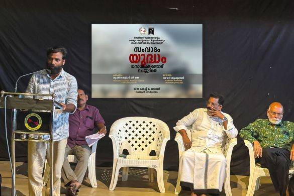 പരപ്പനങ്ങാടി:നവജീവൻ വായനശാലയും ശാസ്ത്ര സാഹിത്യ പരിഷത്ത് പരപ്പനങ്ങാടി മേഖല കമ്മിറ്റിയും സംയുക്തമായി യുദ്ധം ജനാധിപത്യത്തോട് ചെയ്യുന്നത് എന്ന വിഷയത്തിൽ സംവാദം സംഘടിപ്പിച്ചു.