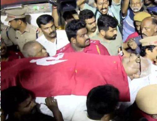 പ്രിയ സഖാവ് വിഎസ് അച്യുതാനന്ദന് വീരോചിത യാത്രയയപ്പാണ് നാട് നല്കയത്. ഇന്നലെ ഉച്ചയ്ക്ക് രണ്ടു മണിക്ക് തലസ്ഥാനത്തു നിന്ന് ആരംഭിച്ച വിലാപയാത്ര 22 മണിക്കൂറുകൊണ്ടാണ് പുന്നപ്രയിലെ വേലിക്കകത്ത് വീട്ടില് എത്തിച്ചേര്ന്നത്. വഴിനീളെ മഴയെ അവഗണിച്ച് ആയിരങ്ങള് കാത്തു നിന്ന് വിഎസിന് അന്ത്യാഞ്ജലി അര്പ്പിച്ചു. വേലിക്കകത്ത് വീട്ടിലും പിന്നീട് മൂന്ന് മണിയോടെ ആലപ്പുഴ സിപിഎം ഡിസി ഓഫീസിലേക്ക് എത്തിച്ചു. കനത്ത മഴയെ പോലും അവഗണിച്ച ജനങ്ങളുടെ വലിയ തിരക്കാണ് എല്ലാ ഇടങ്ങളിലുമുണ്ടായത്.