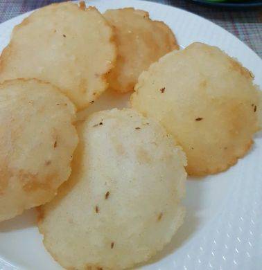 - വറുത്തെടുക്കുക: ചീനച്ചട്ടിയിൽ വെളിച്ചെണ്ണ ചൂടാക്കുക. എണ്ണ നന്നായി ചൂടായിക്കഴിയുമ്പോൾ പരത്തി വെച്ച പത്തൽ അതിലേക്ക് ഇടുക.