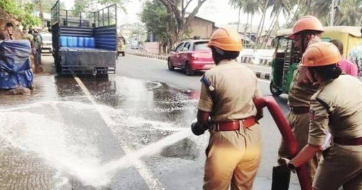 സ്വകാര്യ കമ്പനിയിലേക്ക് വ്യാവസായികാവശ്യത്തിനായി കടുപ്പമേറിയ വിനാഗിരി കൊണ്ടുപോകുന്നതിനിടെ കന്നാസ് നിലത്തു വീണ് ലായനി റോഡിൽ പരക്കുകയായിരുന്നു.
