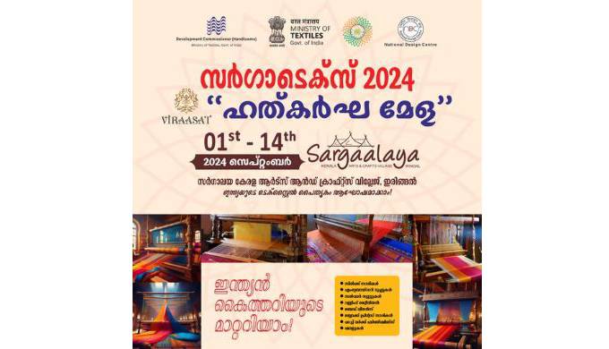 കോഴിക്കോട്: ഇരിങ്ങല് സര്ഗാലയയില് കൈത്തറി പൈതൃകോത്സവം ‘സര്ഗാടെക്സ് 2024’ ഒന്നുമുതല് 14 വരെ നടക്കുമെന്ന് സര്ഗാലയ ജനറല് മാനേജര് ടി കെ രാജേ ഷ് വാര്ത്താസമ്മേളനത്തില് പറഞ്ഞു. ആന്ധ്ര, ബിഹാര്, ഡല്ഹി, ഹരിയാന, ജമ്മു കശ്മീര്, ജാര്ഖണ്ഡ്, തമിഴ്നാട്, മധ്യപ്രദേശ്, മഹാരാഷ്ട്ര, ഒഡിഷ, രാജസ്ഥാന്, യുപി, പശ് ചിമ ബംഗാള്, തെലങ്കാന, കര് ണാട, പഞ്ചാബ് എന്നിവിടങ്ങളി ല്നിന്നുള്ള കൈത്തറി ഉല്പ്പന്നങ്ങള് മേളയിലുണ്ടാവും.