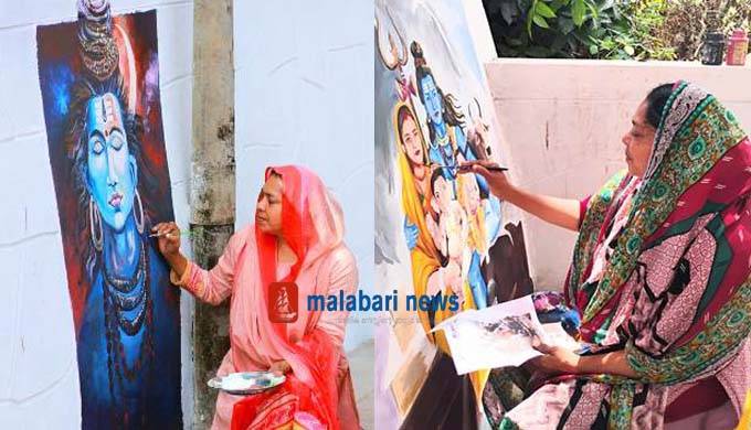 മണ്ണൂർ:ശിവരാത്രി ആഘോഷങ്ങൾക്കു മുന്നോടിയായാണ് കെ.ടി. ഷരീഫയെന്ന ചിത്രകലാ അദ്ധ്യാപിക മണ്ണൂർ ശിവ ക്ഷേത്ര മതിലിൽ ദേവീ ദേവൻമാരുടെ ചിത്രങ്ങൾ വരച്ച് വിസ്മയം തീർക്കുന്നത്. ക്ഷേത്രം ഭാരവാഹികളുടെ ക്ഷണം ഏറെ സന്തോഷത്തോടെ സ്വീകരിക്കുകയായിരുന്നു ഷരീഫ ടീച്ചർ.
