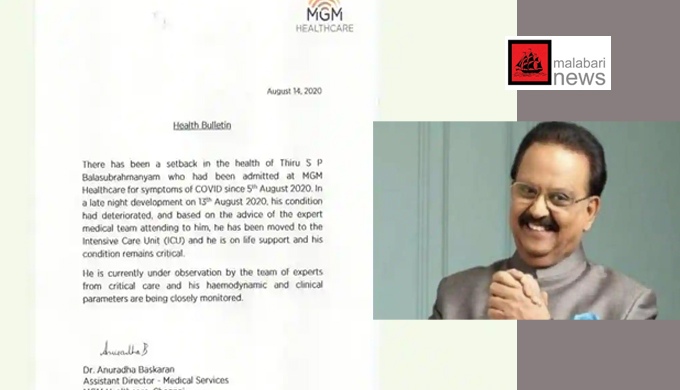 കഴിഞ്ഞദിവസം എസ്പിബിയുടെ ആരോഗ്യനില കുഴപ്പമില്ലെന്നും രോഗം ഭേദമായി വരുന്നതായും ആശുപത്രി അധികൃതര് അറിയിച്ചിരുന്നു.