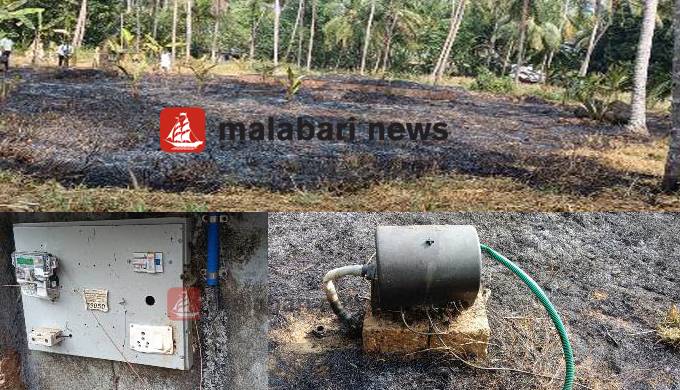 തീപിടുത്തത്തില് ഇരുപ്പതോളം തെങ്ങിന് തൈകള്, കവുങ്ങ്, വാഴ എന്നിവയും മോട്ടോര് ഷെഡും നശിച്ചു.