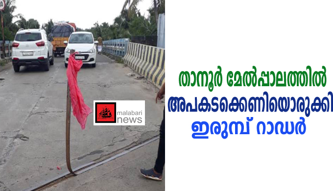 താനൂര്: ദേവധാര് മേല്പ്പാലത്തിന് മുകളില് അടര്ന്നു നില്ക്കുന്ന ഇരുമ്പ് പട്ട അപകടക്കെണിയാകുന്നു. മേല്പ്പാലത്തിലെ സ്പാനുകള്ക്കിടയിലെ ഇരുമ്പ് പട്ട പൊന്തിനിന്നില്ക്കുന്നത് നിരവധി അപകടങ്ങള്ക്കാണ് ഇടയാക്കിയിരിക്കുന്നത്. ഇതോടെ നാട്ടുകാര് ഇൗ ഇരുമ്പ് പട്ട ഉയര്ത്തി ഇതിനുമുകളില് ചുകന്ന തുണിചുറ്റി അപകട സൂചന നല്കിയിരിക്കുകയാണ്.