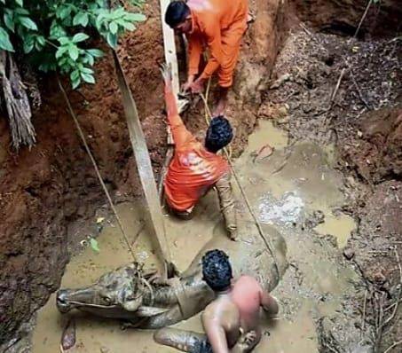 ഞായർ പകൽ 12നാണ് സംഭവം. ചെളിയിൽ താഴ്ന്നുപോയ പോത്തിനെ മുക്കം അഗ്നിരക്ഷാ സേനയിലെ ഫയർ ആൻഡ് റെസ്ക്യു ഓഫീസർമാരായ എ എസ് പ്രദീപ്, ആർ മിഥുൻ എന്നിവർ കുളത്തിലിറങ്ങി റെസ്ക്യൂ ബെൽറ്റ് റോപ്പ് എന്നിവ ഉപയോഗിച്ച് നാട്ടുകാരുടെ സഹായത്തോടെ സുരക്ഷിതമായി പുറത്തെത്തിക്കുകയായിരുന്നു.