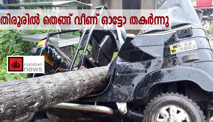 തിരൂര്: തെങ്ങ് വീണ് ഓട്ടോറിക്ഷ തകര്ന്നു. ആലത്തിയൂര് ചമ്രവട്ടം റോഡില് റൈസ് ഫ്ളോര് മില്ലിന് സമീപം നിര്ത്തിയിട്ടിരുന്ന ഓട്ടോയ്ക്ക് മുകളിലേക്കാണ് കാറ്റില് തെങ്ങ് മറിഞ്ഞുവീണത്. ആലത്തിയൂര് സ്വദേശി അഫ്സലിന്റെ ഓട്ടോറിക്ഷയാണ് പൂര്ണമായും തകര്ന്നത്.