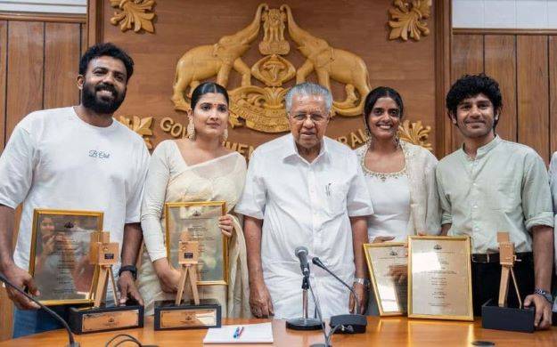 കാന് ചലച്ചിത്ര മേളയില് തിളങ്ങിയ മലയാള ചലച്ചിത്ര പ്രവര്ത്തകര്ക്ക് സംസ്ഥാന സര്ക്കാര് ആദരിച്ചു. മുഖ്യമന്ത്രിയുടെ കോണ്ഫറന്സ് ഹാളില് നടന്ന ചടങ്ങില് മുഖ്യമന്ത്രി പിണറായി വിജയന് ഉപഹാരങ്ങള് കൈമാറി. കാന് ചലച്ചിത്ര മേളയിലടക്കം സിനിമാലോകത്ത് നിലവില് നേടിയ നേട്ടങ്ങള് തുടരാന് ചലച്ചിത്ര പ്രവര്ത്തകര്ക്ക് കഴിയട്ടെയെന്ന് മുഖ്യമന്ത്രി ആശംസിച്ചു. കനി കുസൃതി, ദിവ്യാപ്രഭ, ഹൃദു ഹാറൂണ്, അസീസ് നെടുമങ്ങാട് എന്നിവര് മുഖ്യമന്ത്രിയില് നിന്നും പുരസ്കാരങ്ങള് ഏറ്റുവാങ്ങി.