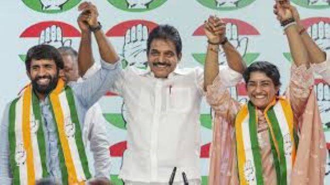 കോണ്ഗ്രസ് അധ്യക്ഷന് മല്ലികാര്ജുന് ഖര്ഗെയെ സന്ദര്ശിച്ചതിന് ശേഷം ഇന്നലെ ഉച്ചയ്ക്കായിരുന്നു വിനേഷ് ഫോഗട്ടും ബജ്റംഗ് പുനിയയും പാര്ട്ടിയില് ചേര്ന്നത്. ഡല്ഹിയിലെ കോണ്ഗ്രസിന്റെ ഹെഡ്ക്വാര്ട്ടേര്സില് വെച്ചായിരുന്നു പാര്ട്ടിയില് ചേര്ന്നത്. കോണ്ഗ്രസ് അധ്യക്ഷന് മല്ലികാര്ജുന് ഖര്ഗെയെ അദ്ദേഹത്തിന്റെ വസതിയില് സന്ദര്ശിച്ചതിന് പിന്നാലെയാണ് ഇരുവരും ഹെഡ്ക്വാര്ട്ടേഴ്സില് ചെന്നത്. ബുധനാഴ്ച രണ്ട് പേരും ലോക്സഭാ പ്രതിപക്ഷ നേതാവ് രാഹുല് ഗാന്ധിയെ സന്ദര്ശിച്ചിരുന്നു.